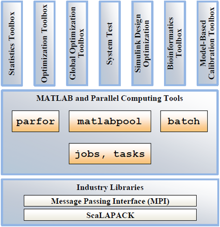 MATLAB利用 Parallel Computing Toolbox,可以使用多核处理器、GPU 以及计算机集群来解决运算和数据密集型问题。循环并行化 ( parallel for-loops)、特殊数组类型以及并行数值算法等高级结构让您实现 MATLAB 应用程序的并行化,而无需进行 CUDA 或 MPI 编程。可以使用 Simulink 工具箱并行运行一个模型的多个仿真。工具箱提供用于在多核台式机上本地执行应用程序的12个worker(MATLAB 计算引擎)。无需更改代码。