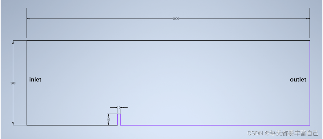 流动计算域模型如图所示,包含入口(inlet)、出口(outlet)及壁面(其他的均为wall)。单位为mm