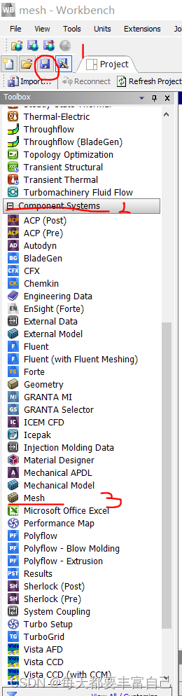 先将workbench保存一下,也就是【1】处,保存到自己想要保存的 文件夹 下