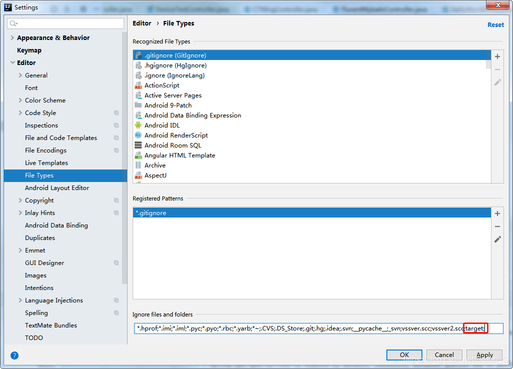 File --> setting --> File Types 将忽视的target文件删掉就可以了