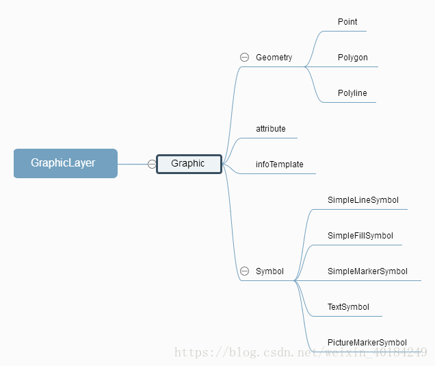 这是整个Graphic涉及的一些类,上图中的可以进行客户端点、线、面的表示。在服务器端的进行修改时applyEdits函数传入的也是graphic,drawToolbar绘图类也涉及到graphic,总而言之,graphic可以视为一个要素元素,感觉更应该称之为图形