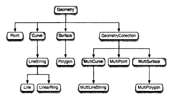 ④点、线、多边形、多点、多线和多多边形等几何类型和几何集合(GeometryCollections)等OpenGIS Simple Features Specification;