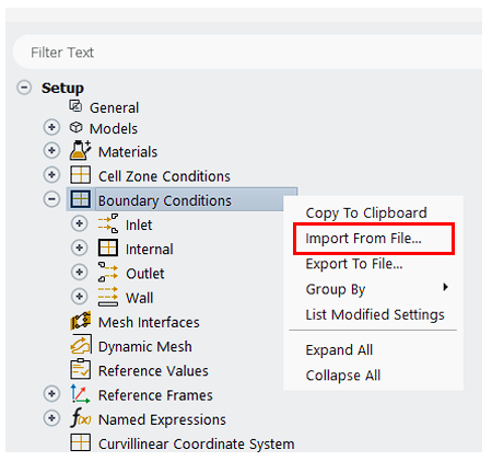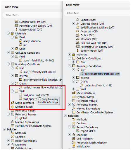 注意事项 2:通过TSV文件仅能传递模型B中可设置的内容。例如模型B中没有开启能量方程,则模型A中的热边界条件设置无法通过TSV文件传递给模型B