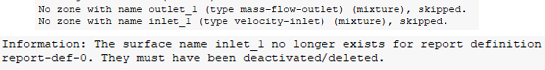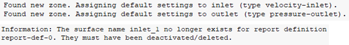 注意事项 :网格替换后,命名依照新读入的网格。若模型A和模型B的命名不一致,则无法复用命名不一致对象的设置,命令行中会出现如图类似的提示信息。