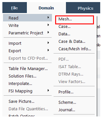 step 1:在模型A中,从Fluent界面左上角的file菜单选择read mesh,读入模型B的网格