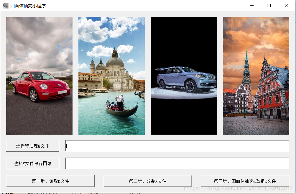 import sysfrom PyQt5.QtWidgets import QMainWindow, QPushButton, QApplication,QFileDialog,QMessageBox,QLineEdit,QLabelfrom Read_K_File import read_k_file,split_file,Reorderfrom PyQt5.QtGui import QIcon,QPixmap,QGuiApplicationfrom random import randintfrom time import clock,sleepfrom ToolBox import My_deletfile class Example(QMainWindow): def __init__(self): super().__init__() self.pp = "" self.shell_num = 0 self.solid_num = 0 self.initUI() def initUI(self): self.inputfile_name = QLineEdit(self) self.inputfile_name.move(220, 438) self.inputfile_name.resize(760, 40) self.outputfile_name = QLineEdit(self) self.outputfile_name.move(220, 498) self.outputfile_name.resize(760, 40) #lable_2=QLabel() #lable_2.setGeometry(100,500,100,100) #lable_2.setPixmap(QPixmap("https://www.gofarlic.com\document\Python\GUIdesign\Boom.jpg")) self.lb1 = QLabel(self) self.lb1.setGeometry(20, 20, 225, 400) self.lb2 = QLabel(self) self.lb2.setGeometry(20+225+20, 20, 225, 400) self.lb3 = QLabel(self) self.lb3.setGeometry(20+225+20+225+20, 20, 225, 400) self.lb4 = QLabel(self) self.lb4.setGeometry(20+225+20+225+20+225+20, 20, 225, 400) self.create_fignum() btn1 = QPushButton("选择待处理K文件", self) btn1.move(20, 438) btn1.resize(180,40) btn2 = QPushButton("选择K文件保存目录", self) btn2.move(20, 498) btn2.resize(180,40) btn3 = QPushButton("第一步:读取K文件", self) btn3.move(20, 558) btn3.resize(300,40) btn4 = QPushButton("第二步:分割K文件", self) btn4.move(350, 558) btn4.resize(300, 40) btn5=QPushButton("第三步:四面体抽壳&&&重组K文件",self) btn5.move(680,558) btn5.resize(300, 40) btn1.clicked.connect(self.buttonClicked) btn2.clicked.connect(self.buttonClicked) btn3.clicked.connect(self.Read_K_file) btn4.clicked.connect(self.Split_K_file) btn5.clicked.connect(self.Reorder) self.setGeometry(300, 300, 1000,618 ) self.setWindowTitle('四面体抽壳小程序') self.setWindowIcon(QIcon("img\Boom.jpg")) self.show() self.setFixedSize(self.width(), self.height()) self.gui = QGuiApplication.processEvents def create_fignum(self): fig_num = [randint(1, 28)] while True: if len(fig_num) <4: K = randint(1, 28) if K in fig_num: continue else: fig_num.append(K) else: break self.lb1.setPixmap(QPixmap("img/" + str(fig_num[0]) + "_1.jpg")) self.lb2.setPixmap(QPixmap("img/" + str(fig_num[1]) + "_1.jpg")) self.lb3.setPixmap(QPixmap("img/" + str(fig_num[2]) + "_1.jpg")) self.lb4.setPixmap(QPixmap("img/" + str(fig_num[3]) + "_1.jpg")) def buttonClicked(self): sender = self.sender() if sender.text()=="选择待处理K文件": fileName1, filetype = QFileDialog.getOpenFileName(self, "选取文件", sys.path[0], "K文件(*.k);;txt文件 (*.txt);;所有文件 (*)") self.statusBar().showMessage(fileName1) self.inputfile_name.setText(fileName1) elif sender.text()=="选择K文件保存目录": self.statusBar().showMessage(sender.text() + ' was pressed') fileName2, filetype = QFileDialog.getSaveFileName(self, "选取文件", sys.path[0], "K文件(*.k);;txt文件 (*.txt);;所有文件 (*)") self.statusBar().showMessage(fileName2) self.outputfile_name.setText(fileName2) def Read_K_file(self): if self.inputfile_name.text(): with open(self.inputfile_name.text(),"r") as F: start=clock() i=1 line_num=1 pp='' while True: self.statusBar().showMessage("开始读取K文件,如有卡顿属于正常现象,稍等即可,不用退出。已读取 "+str(line_num)+" 行") line_num = line_num + 1 Line = F.readline() if Line: pp = pp + Line if "*ELEMENT_SHELL" in Line: self.shell_num=self.shell_num+1 elif "*ELEMENT_SOLID" in Line: self.solid_num=self.solid_num+1 elif "*END" in Line: self.pp = self.pp + pp else: break if i == 20000: self.pp=self.pp+pp pp='' self.gui() sleep(0.5) self.create_fignum() i=0 i=i+1 endd=clock() self.statusBar().showMessage("共读取 "+str(line_num)+" 行数据,用时:"+str(endd-start)+"秒") Message="读取K文件完毕!"+"\n"+"共有"+str(self.shell_num)+"种面单元;有"+str(self.solid_num)+"种体单元" QMessageBox.information(self,"Information",Message,QMessageBox.Yes) else: self.Message("请选择待处理K文件!") def Split_K_file(self): self.statusBar().showMessage("开始分割K文件") if self.pp: split_file(self.pp, self.shell_num, self.solid_num,self.statusBar().showMessage,self.Message) Message="分割K文件完成!" QMessageBox.information(self, "Information", Message, QMessageBox.Yes) else: self.Message("没有读取文件") def Reorder(self): try: with open("head.k","r") as f: self.statusBar().showMessage("开始抽壳和重组文件,依然会有失去响应的现象,请少安勿燥") if self.outputfile_name.text(): Reorder(self.outputfile_name.text(),self.statusBar().showMessage,self.Message,self.create_fignum,self.gui) Message = "抽壳和重组文件完成!" QMessageBox.information(self, "Information", Message, QMessageBox.Yes) else: self.Message("没选择K文件保存目录") except: self.Message("还没有分割K文件!!!") My_deletfile("shell_3.k") My_deletfile("shell_4.k") My_deletfile("shell_temp.k") My_deletfile("solid_4.k") My_deletfile("solid_6.k") My_deletfile("solid_8.k") My_deletfile("solid_temp1.k") My_deletfile("solid_temp2.k") My_deletfile("solid_temp3.k") My_deletfile("head.k") My_deletfile("button.k") def Message(self,message): reply=QMessageBox.warning(self,"警告",message,QMessageBox.Yes) if __name__ == '__main__': app = QApplication(sys.argv) ex = Example() sys.exit(app.exec_())UI中包含了按钮,文本框,图片等元素,都比较简单,有不明白的朋友自行百度即可