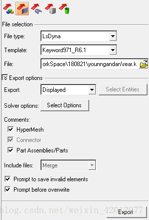 首先在Hypermesh中导出K文件,接下来的所有操作都是基于K文件进行的,Hypermesh导出K文件如下图: