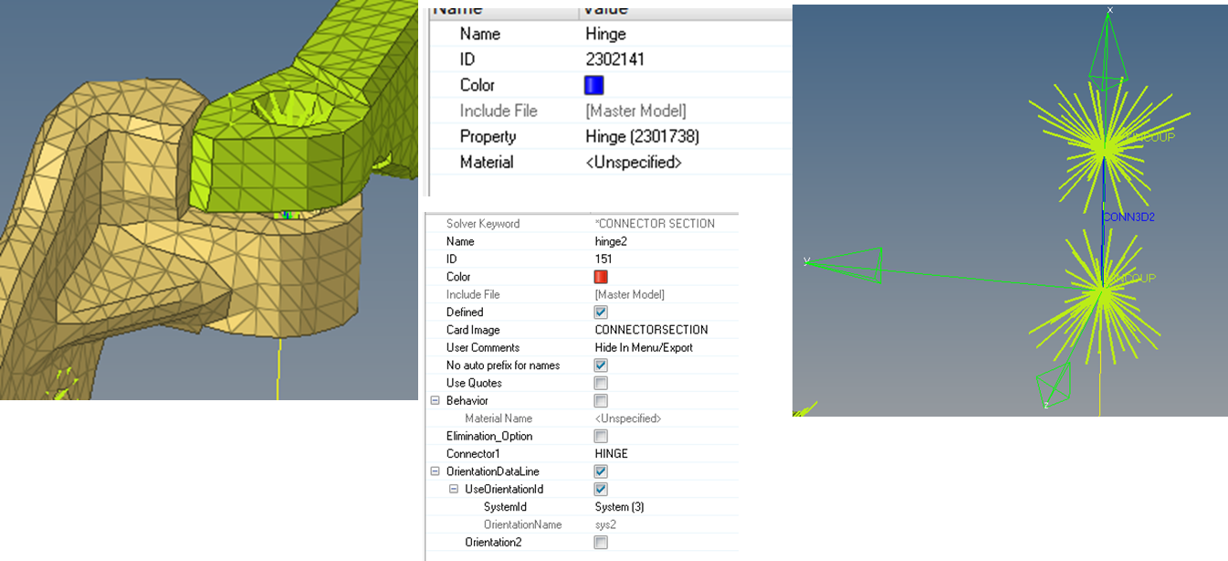 在铰链上下零件的孔中创建2个KIN-COUP单元;