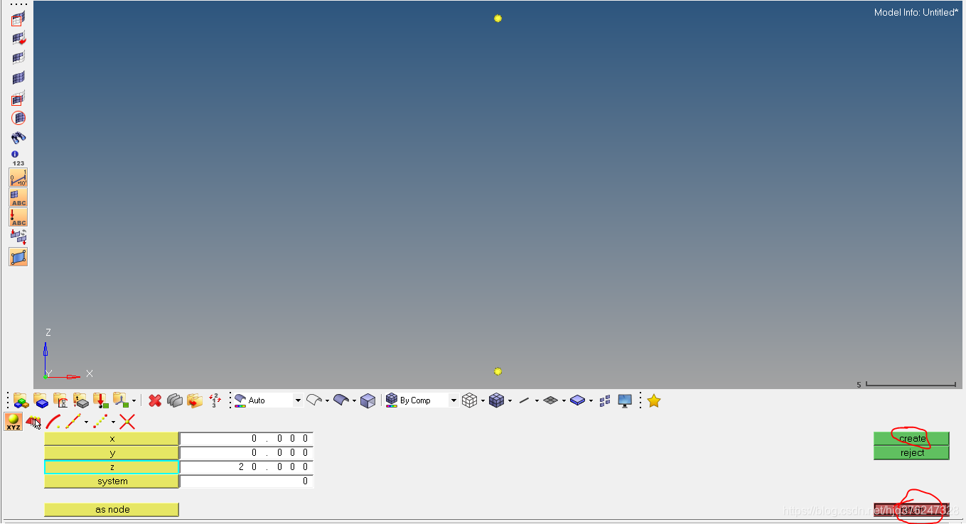 此处设置一个点 坐标 (0,0,0),另一个(0,0,20)