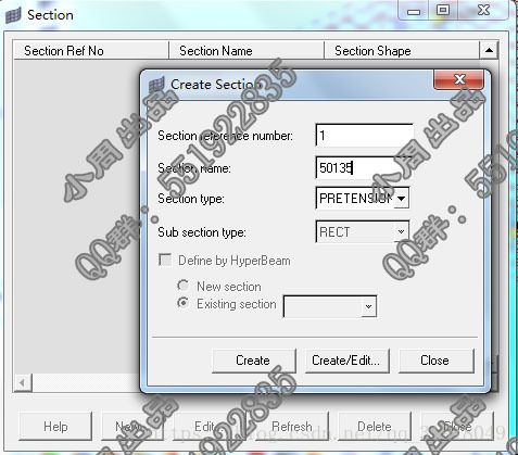 三、接下来建立预紧力单元Beam Section 信息 。Tools——》section_table,进入图6界面。点击New,创建Section。section name最好用k节点编号,便于后连的属性分配。Section type按如图设置,点击Creat/Edit。
