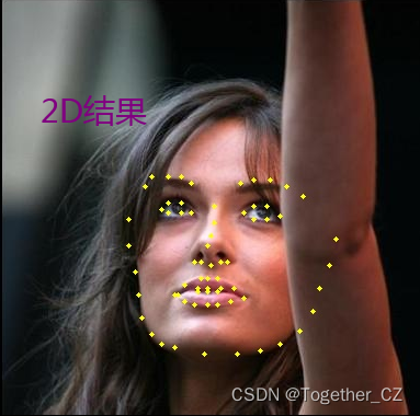 #!usr/bin/env python# encoding:utf-8from __future__ import division """__Author__: 沂水寒城功能: 人脸关键点检测https://github.com/1adrianb/face-alignment""" import osimport cv2import jsonimport face_alignmentfrom skimage import io def face2d(data="aflw-test.jpg", save_path="output_2d.jpg"): """ 2D关键点检测 """ fa = face_alignment.FaceAlignment( face_alignment.LandmarksType._2D, flip_input=False, device="cpu" ) inputs = io.imread(data) preds = fa.get_landmarks(inputs) print("type_preds: ", type(preds)) print("preds_length: ", len(preds)) frame = cv2.imread(data) points_list = preds[0].tolist() print("points_list_length: ", len(points_list)) for one_point in points_list: x, y = one_point cv2.circle( frame, (int(x), int(y)), 2, (0, 255, 255), thickness=-1, lineType=cv2.FILLED ) with open(save_path.split(".")[0].strip() + ".json", "w") as f: f.write(json.dumps(points_list)) cv2.imwrite(save_path, frame) def face3d(data="aflw-test.jpg", save_path="output_3d.jpg"): """ 3D关键点检测 """ fa = face_alignment.FaceAlignment( face_alignment.LandmarksType._3D, flip_input=False, device="cpu" ) inputs = io.imread(data) preds = fa.get_landmarks(inputs) print("type_preds: ", type(preds)) print("preds_length: ", len(preds)) frame = cv2.imread(data) points_list = preds[0].tolist() print("points_list_length: ", len(points_list)) for one_point in points_list: x, y, _ = one_point cv2.circle( frame, (int(x), int(y)), 2, (0, 255, 255), thickness=-1, lineType=cv2.FILLED ) with open(save_path.split(".")[0].strip() + ".json", "w") as f: f.write(json.dumps(points_list)) cv2.imwrite(save_path, frame) if __name__ == "__main__": face2d(data="aflw-test.jpg", save_path="output_2d.jpg") face3d(data="aflw-test.jpg", save_path="output_3d.jpg") 这里完整的将关键点结果已经对应的结果图片都进行的存储处理,方便自己后续的应用进行业务整合计算,2D和3D的实现官方封装的很好了只是一个参数的区别,这里为了直观,我将其分为了两个独立的函数。