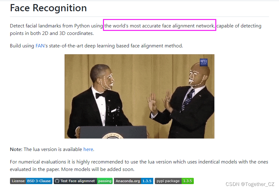 今天在调试一个项目的时候报错缺少face-alignment模块,查询一下发现这个模块号称是世界上精度最高的检测器,瞬间来了兴致,从Git上 下载 下来学习一下。