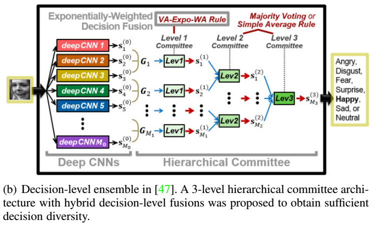 对于决策级帧聚合,例如有生成所有帧的表情类别概率,并连接成一个固定帧长度向量再进行分类。具体分类序列时,考虑到表情是一个实际由开始到结束的变化过程,因此,作者比较了这些向量最后的决策机制,如去平均,最大,或者WTA,平方再平均等等,具体可以看看论文。