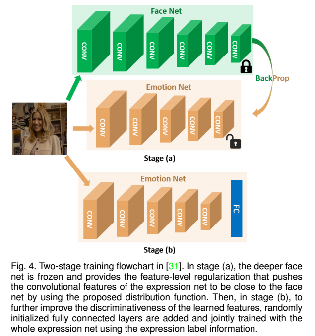 还有,考虑到人脸识别模型弱化了人脸情绪差异,可以用人脸识别模型提取特征,然后用表情识别网络消除人脸识别模型带来情绪差异的弱化。也就是这里人脸识别模型起到初始化表情网络的作用。