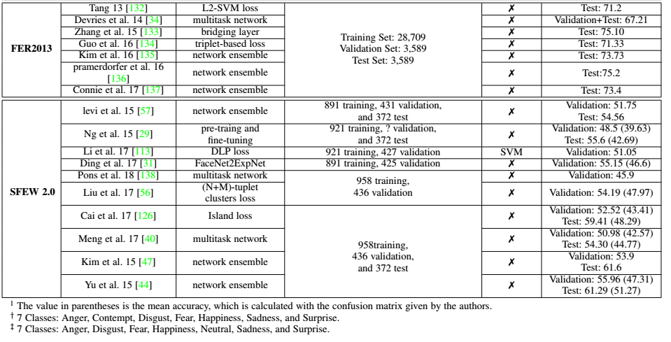 上图展示了作者收集整理的FER数据集,很全面,基本涵盖了从开始到当下,公开的数据集。