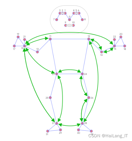 landmarks要将样本转换为 k-NN 分类器训练集,我们可以在给定图像上运行 BlazePose 模型,并将预测的landmarks转储到 CSV 文件中。此外,Pose Classification Colab (Extended)通过针对整个训练集对每个样本进行分类,提供了有用的工具来查找异常值(例如,错误预测的姿势)和代表性不足的类别(例如,不覆盖所有摄像机角度)。