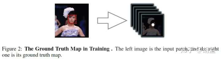 fig 4中,为landmark定位新增了一个分支,如果要输出N个landmark,那么landmark定位分支共输出N通道的feature map,feature map上每个像素表示该位置为一个特定landmark的概率(each pixel represent the confidence score of being a landmark at that location);从这点上来看,landmark分支的gt feature map和检测分支的gt feature map是非常相似的,二者的区别在于:检测分支的gt feature map是四通道,landmark分支的gt feature map是N通道,N对应要输出的landmark数目;---- 有多少landmark点,就输出多少通道即可,因为feature map上每个像素点位置已经包含了landmark的位置信息了;---- gt的生成方式也很简单,以fig 4为例,如果有72个landmark点,那么输出feature map就是72通道,每个通道上按一定规律(例如人脸landmark点按顺时针获取等),将每个gt feature map上属于该通道的landmark位置设置为1,其他位置置0即可;