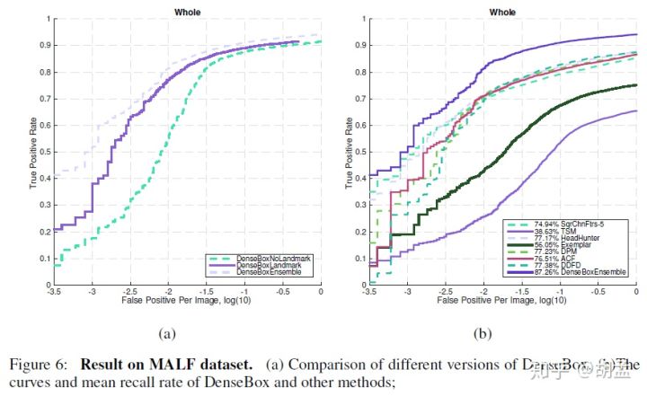 如fig 6(a),添加landmark任务能显著提升性能,模型集成也能提升性能;fig 6(b)中与其他人脸检测算法在MALF对比,发现DenseBox是sota;