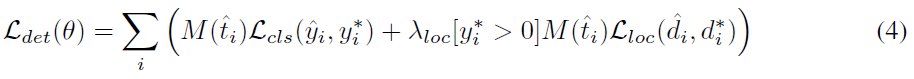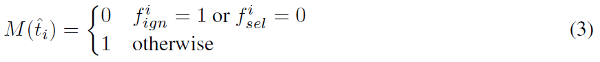 对于一个pixel样本 t^i = {y^i,d^i}(5-d,y^i:分类;d^i:bbox坐标),基于以上定义的标签Fign和Fsel,最终的掩码表示为M(t^i):