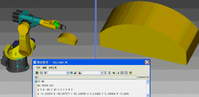 第四步:Robotworks自动产生各种机器人代码,包含笛卡尔坐标数据,关节坐标数据,工具与坐标系数据,加工工艺等,按照工艺要求保存不同的代码。