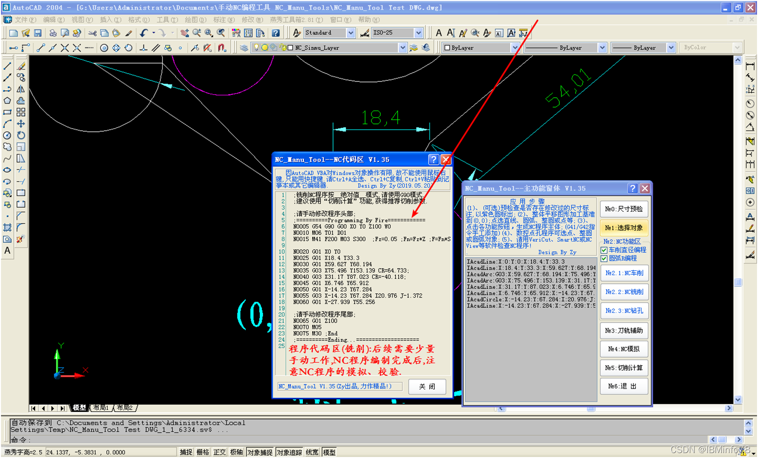 在数控程序编制中针对实际问题,编制基于AutoCAD图形数控程序工具NC_Manu_Tool。它利用Auto CAD图 形准确、快速完成数控程序手工编制的工作。该程序针对Siemens 810D/840D、Fanuc系列数控系统的编程助手,利用AutoCAD图纸(当然,也可绘制图形“建模”)进行比例缩放和整体平移可以快速完成编程任务。