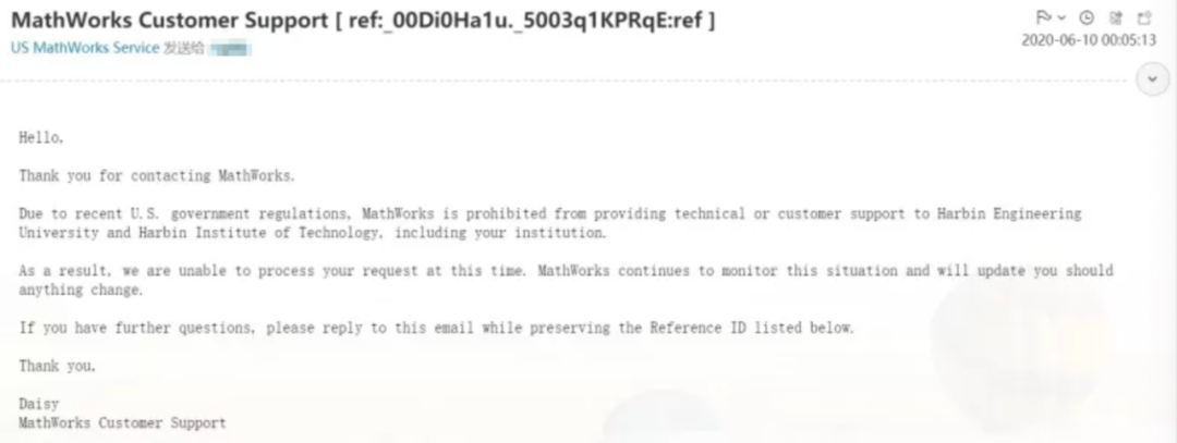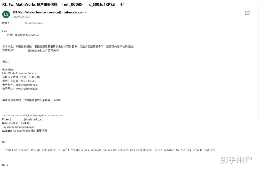 然后有人咨询了 MathWorks 和哈工大校内负责技术支持的老师,收到如下回复: