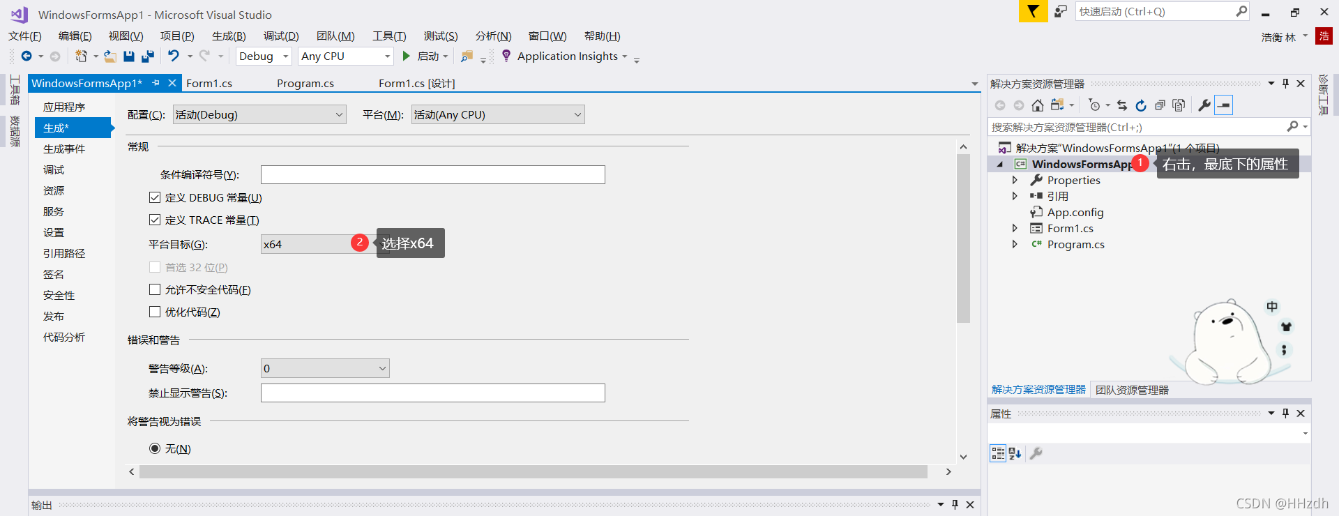 1、新建WindowsFormsApp1工程