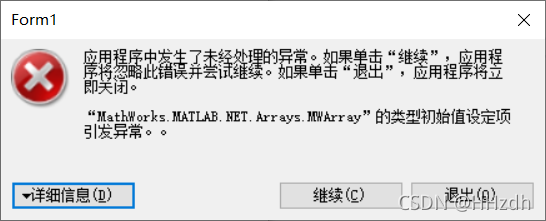 遇到“MathWorks.MATLAB.HET.Arrays.MWArray”的类型初始值设定项引发异常的问题,查阅资料后大致了解是版本差异的原因,即我装的Matlab这边生成的dll和MWArray.dll是x64文件(因为我装的是64位matlab),而我的C#生成的时候选择的平台目标默认首选32位(即x86),导致不匹配。