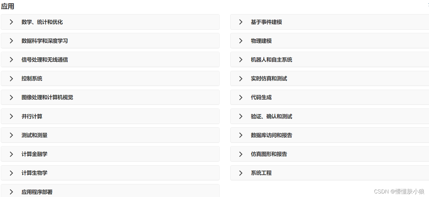 下面是从MATLAB官网摘录来的工具箱分类截图: