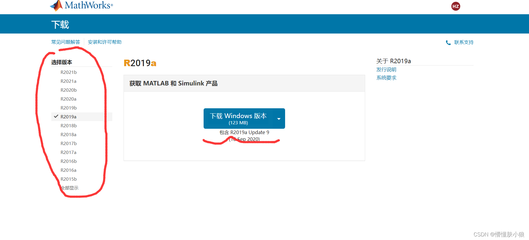 如果需要登录MathWorks账号,就注册一个账号,然后选择要下载的版本