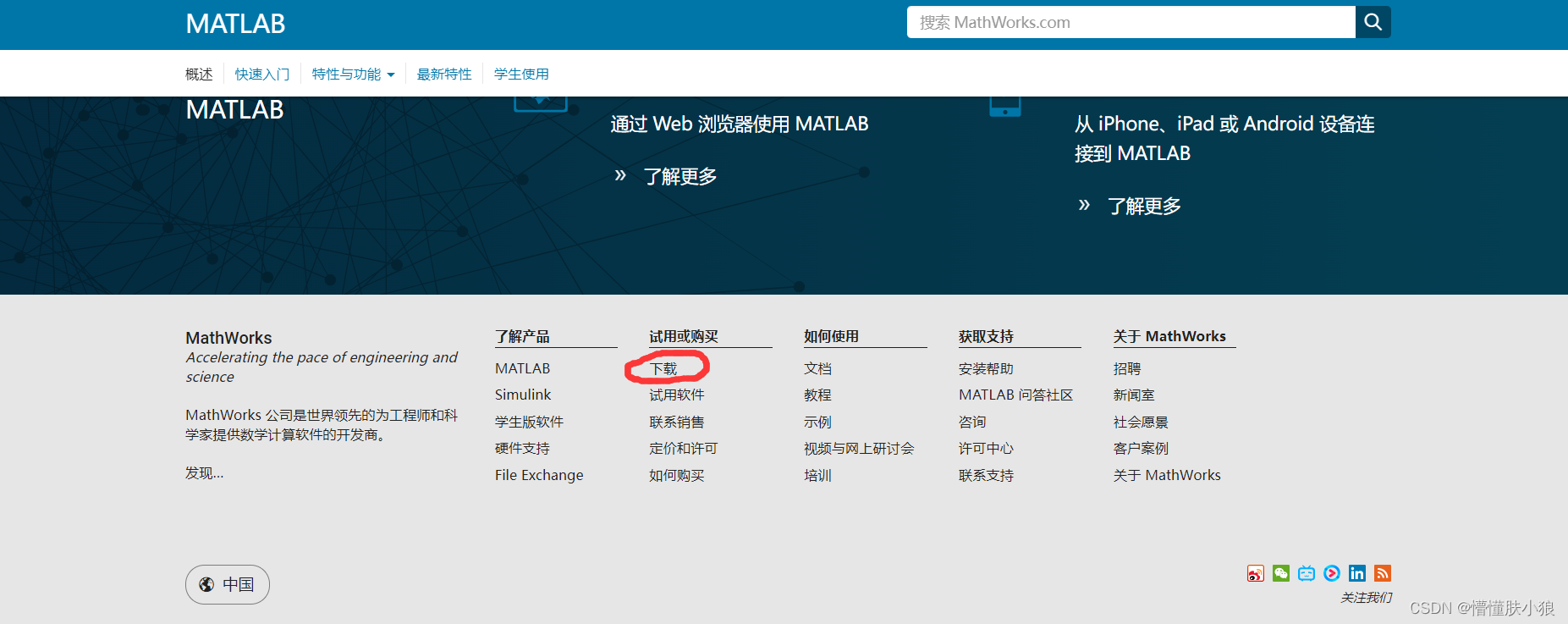 首先打开MATLAB官网,链接为:https://ww2.mathworks.cn/products/matlab.html