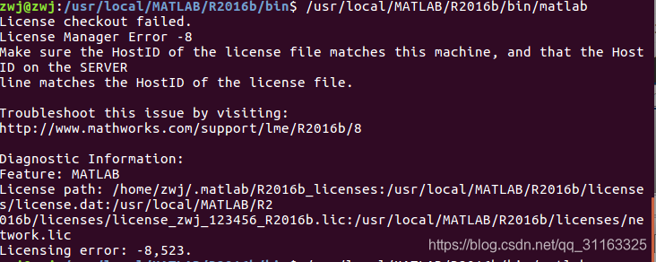 016b/licenses/license_zwj_123456_R2016b.lic:/usr/local/MATLAB/R2016b/licenses/network.lic