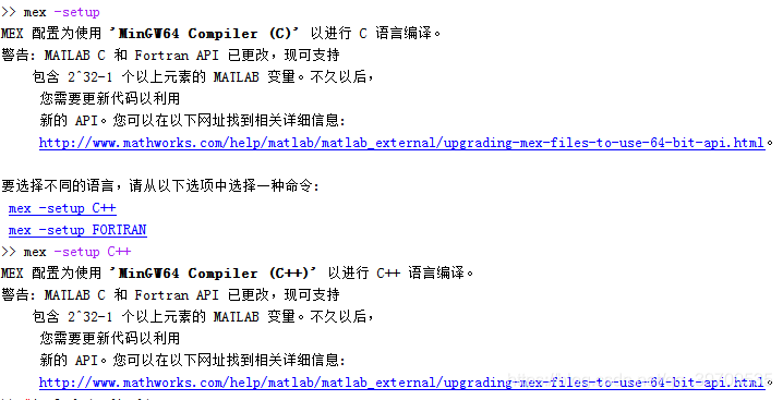 但是在命令行输入mex -setup 后呈现如下错误: