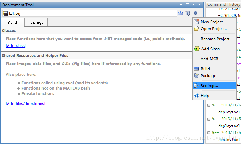 在Matlab命令行中输入deploytool,出现如下窗口: