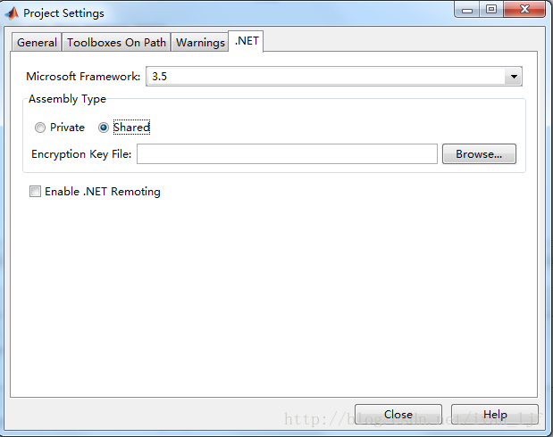 Target:因为是要用CSharp去调用Matlab的dll,所以选择.Net Assembly