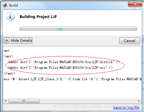 编译时出现如下界面:会在我们指定的目录下面生成LJF工程,在LJF文件夹下包含两个子文件夹distrib,src。distrib文件夹包含我们要用的dll文件,src文件夹包含编译的源文件。