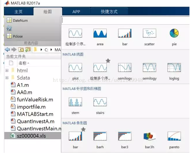 对于一个新手,我们还不知道如何绘图。但不要紧,新版 MATLAB 提供了更强大的绘图功能——“绘图”面板,这里提供了非常丰富的图形原型,如图 5 所示。
