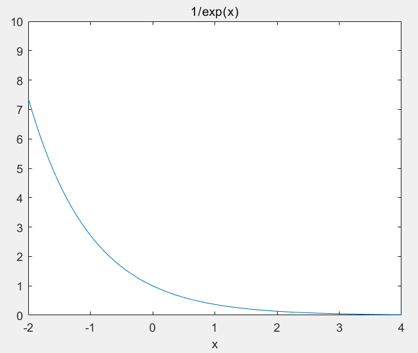 ezplot('1/exp(x)',[-2,4,0,10])