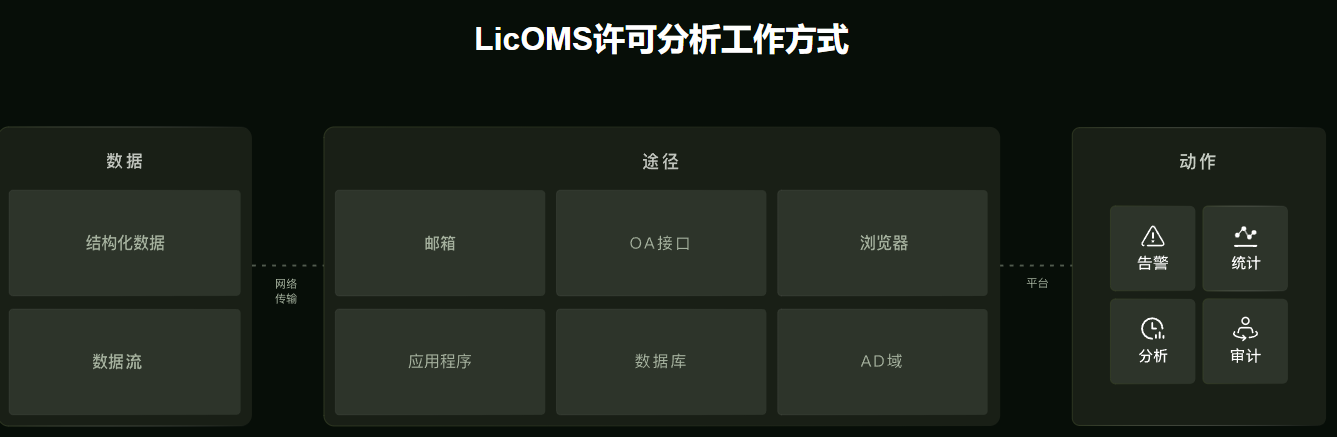在LicOMS中,信息采集模块扮演着核心角色。它通过深入剖析软件类型、功能模块、用户数量、用户部门以及终端客户机的数据,精确描绘出许可证(License)的使用全景。这不仅为企业的信息化管理运营提供了坚实的参考基础,更是预防合规风险的第一步。信息的全面收集和分析,使得企业能及时了解自身许可资源的利用状况,为后续的决策提供数据支持。