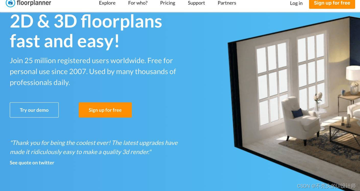 HomeByme是一款易于使用的楼层平面图设计软件免费。 您可以在3D模式下查看自己的布局。 内置其他设计师制作的作品,供参考。 您可以邀请网站上的设计师为您设计一个原型图,大约三个工作日就能收到。