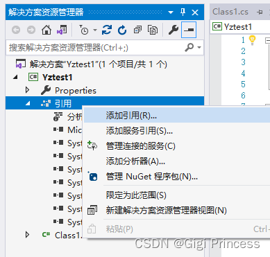 在解决方案资源管理器里找到引用,右键选择添加引用,