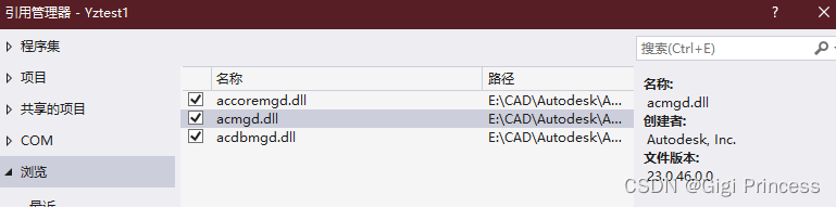 浏览里找到三个文件 acmgd.dll、acdbmgd.dll、accoremgd.dll添加进来