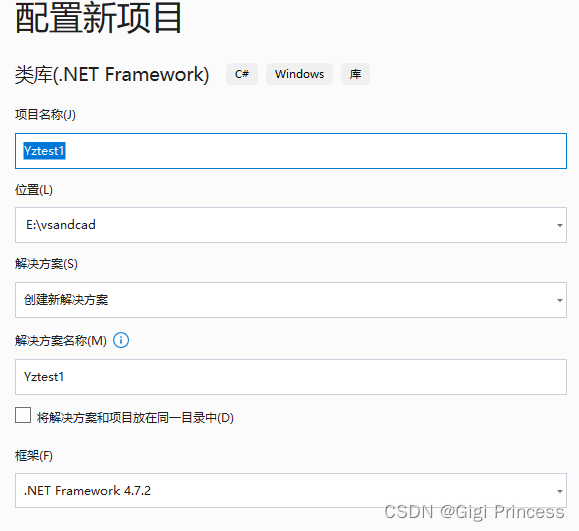 打开vs2019,新建项目,选择C# 类库,框架选择(.NET Framework 4.7.2)