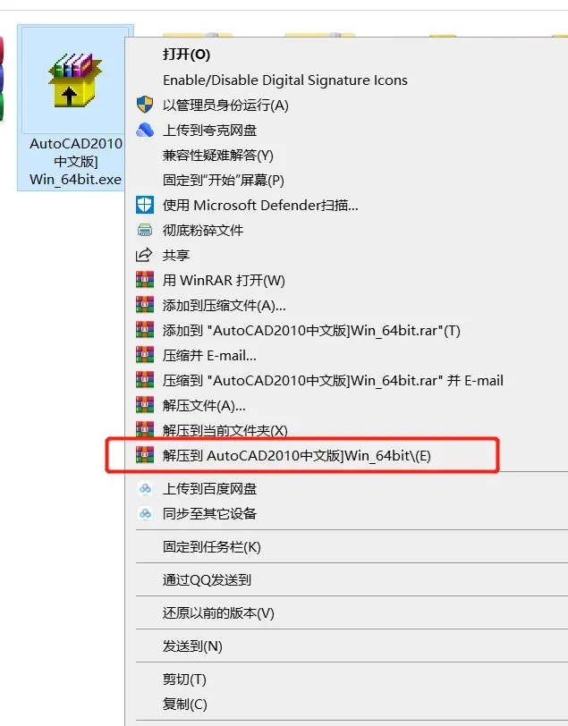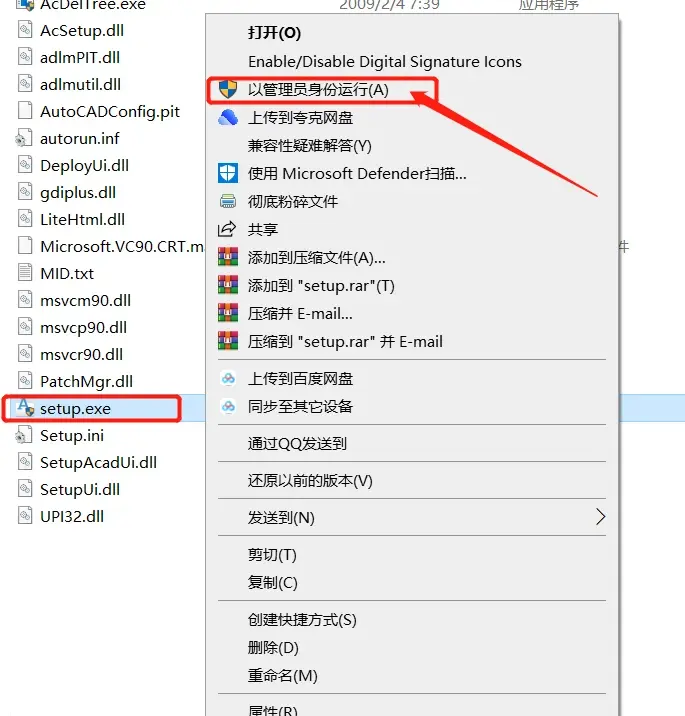2、进入【AutoCAD2010中文版]Win_64bit】文件夹内,右键【setup.exe】以管理员身份运行。