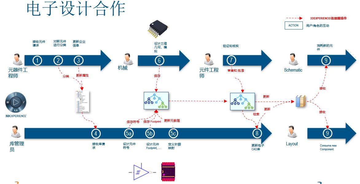 组件&库管理:管理3DEXPERIENCE平台中的电子组件定义,如符号、占用率和仿真模型,使设计人员能够直接从平台实例化组件数据。