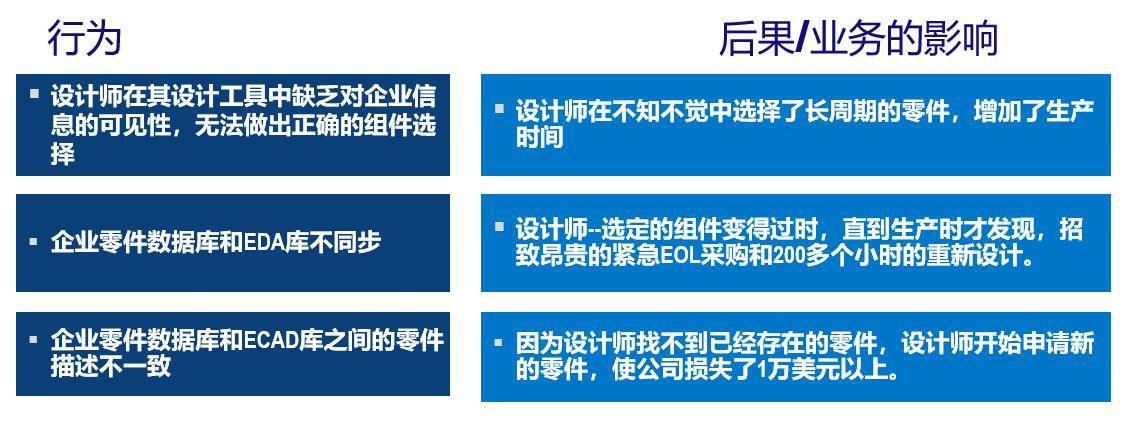 通过加速设计工程师(电气、机械和软件)、采购和制造之间的信息共享,减少周期时间;连接ECAD库、 数据库 等业务系统之间的信息;减少对现有组件的搜索时间,增加对现有组件的重用。