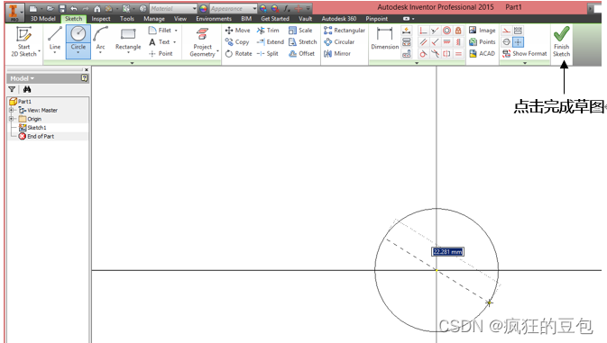 如下图,在该平面再画一个圆(方法同上),点击“完成草图”。