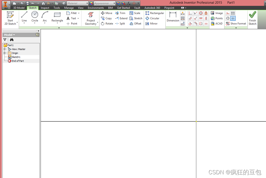 本章开始,我们一起看一下Inventor最基础的三维 命令 —— 拉伸,该命令应该是最基础也是使用频率最高的命令。首先根据上一篇文章新建零件,然后点击下图的新建二维草图,界面如下: