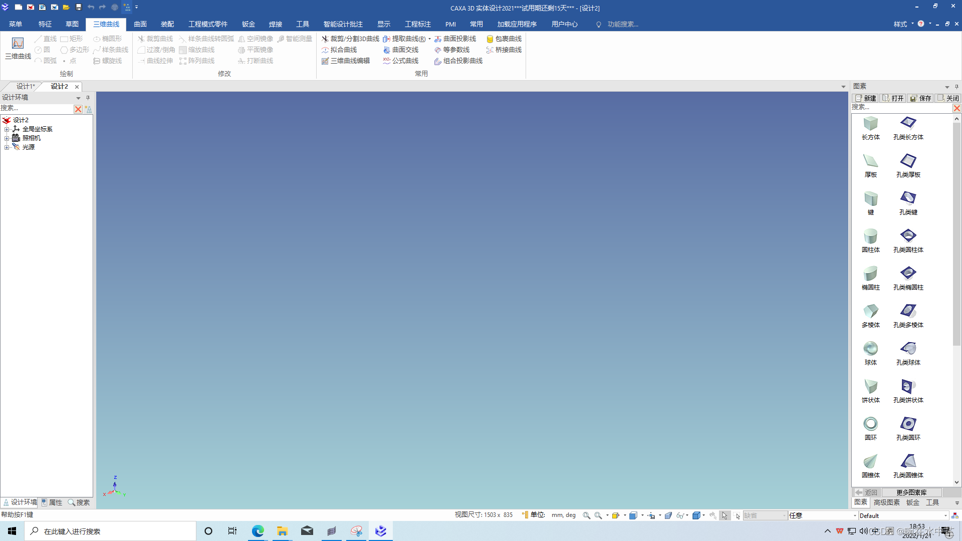 1. 前提条件,已打开设计环境,方法见数码大方3D2021使用教程(一 启动后使用)_畹在水中芷的博客-CSDN博客