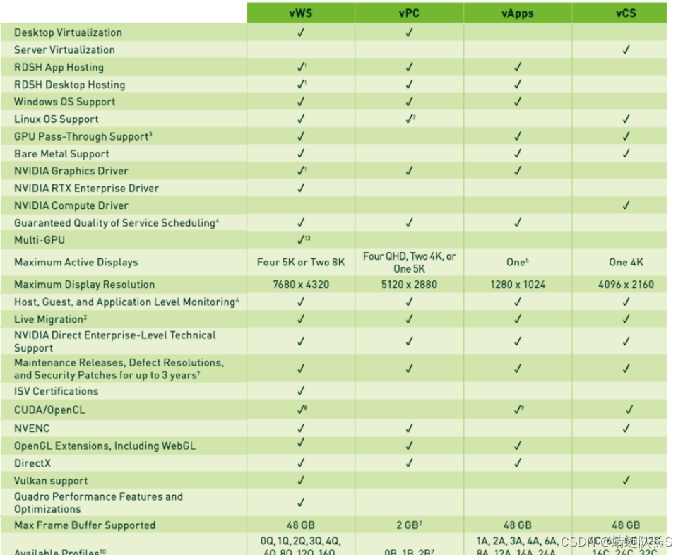 • vWS:适用于专业级图形应用程序,内置Nvidia Quadro驱动。
